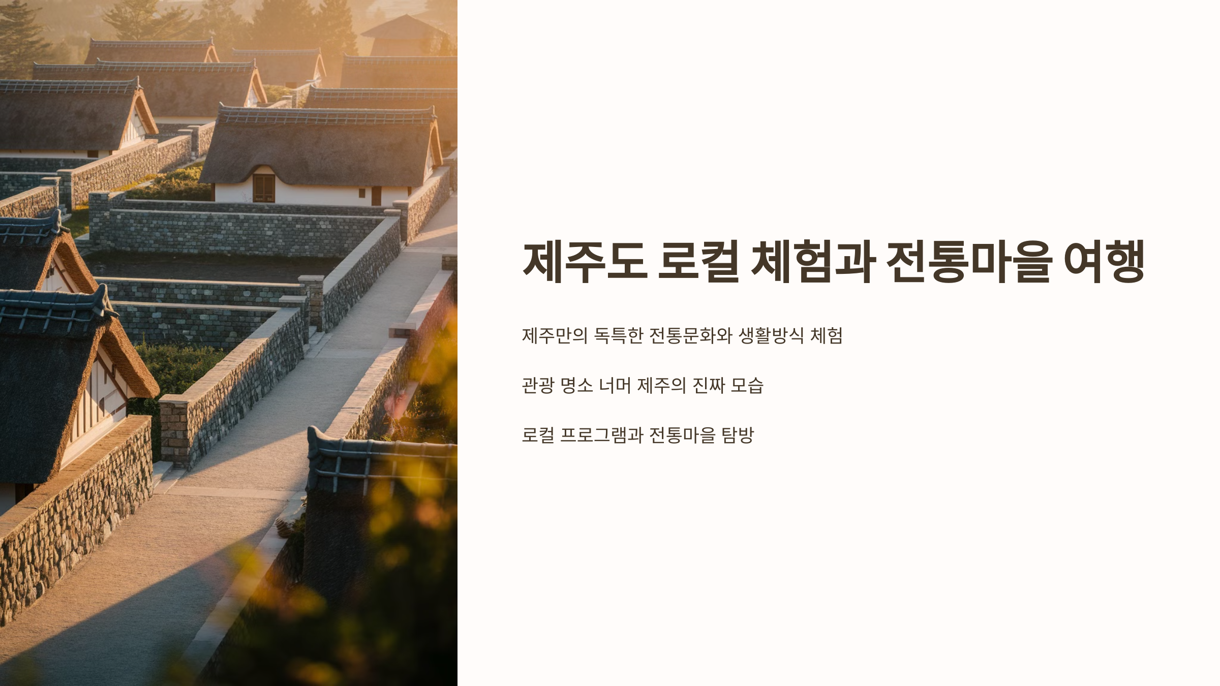 제주도의 색다른 매력을 느끼고 싶다면, 로컬 체험과 전통마을 여행을 일정에 추가해보자!