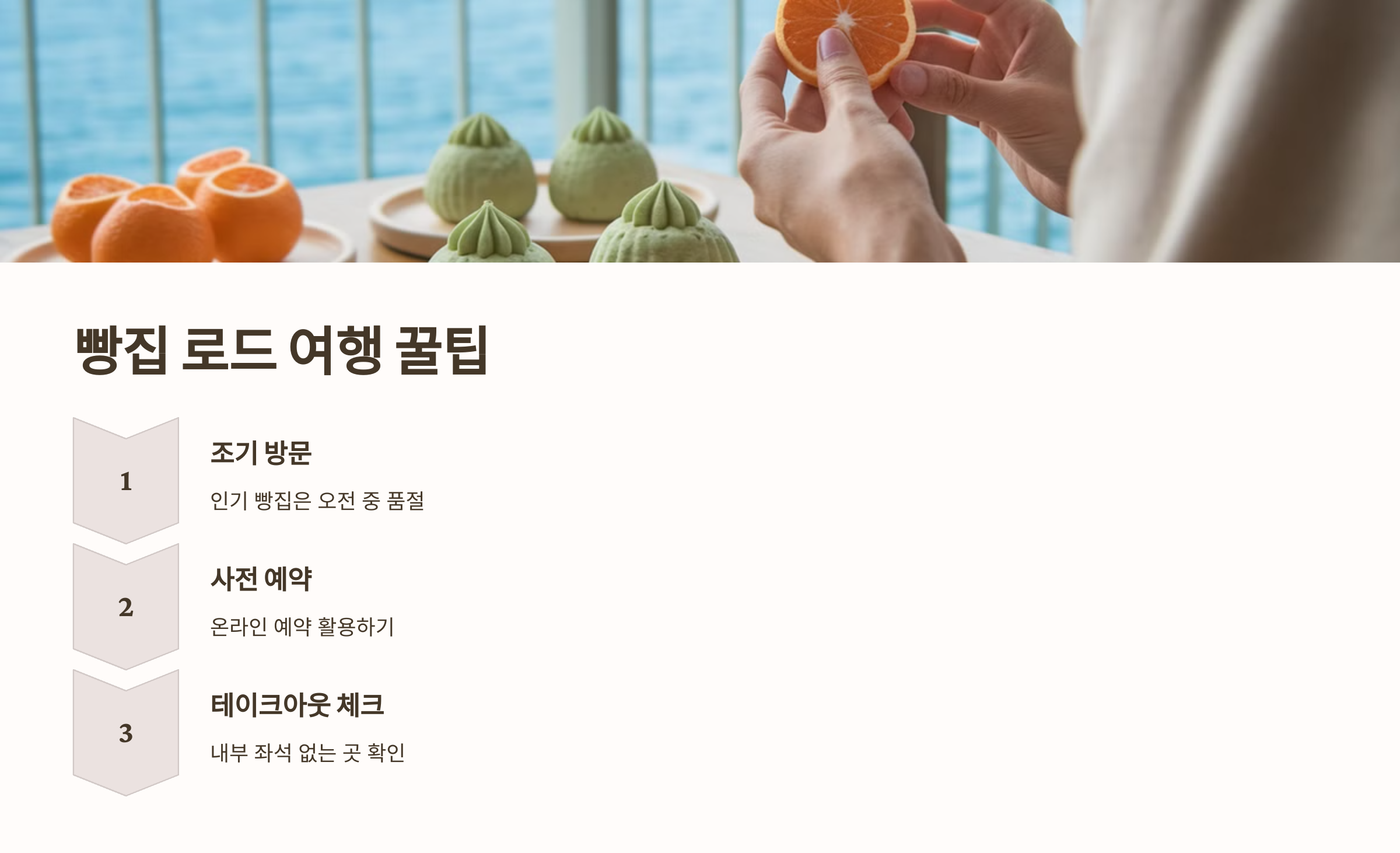 - 조기 마감 주의: 인기 빵집은 오전 중 품절되는 경우가 많으므로 일찍 방문