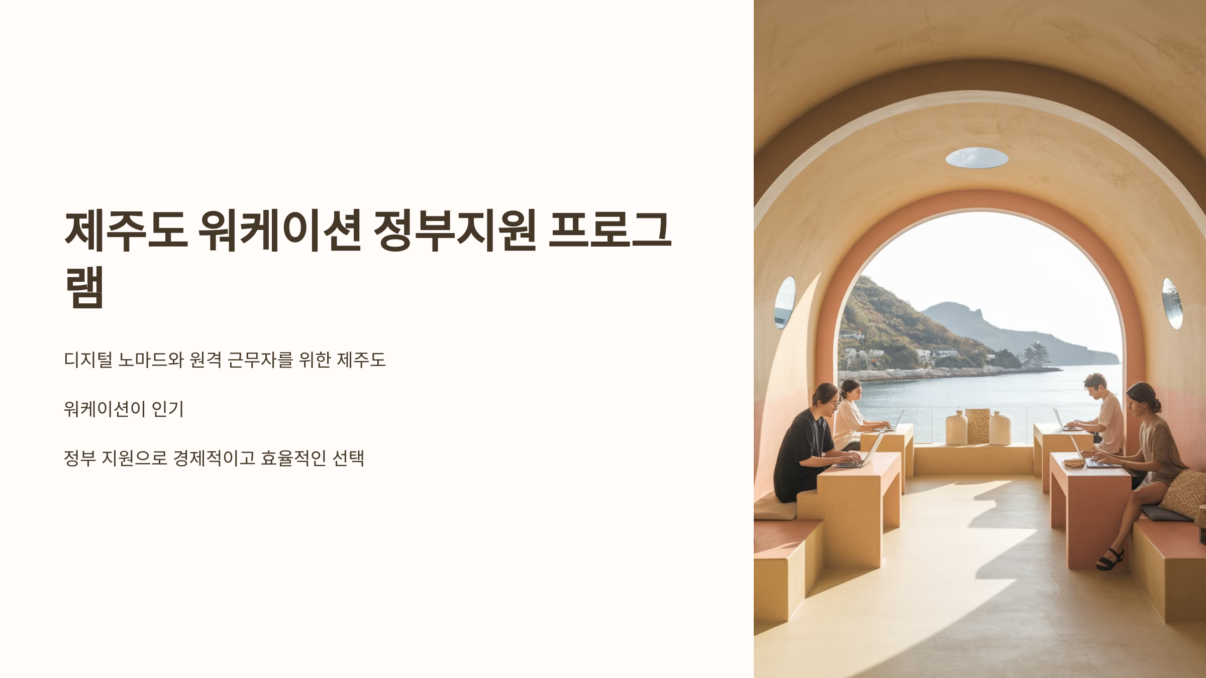 제주도 워케이션 정부지원 프로그램은 디지털 노마드와 원격 근무자들이 제주도에서 더 쉽게 워케이션을 즐길 수 있도록 다양한 혜택을 제공합니다.