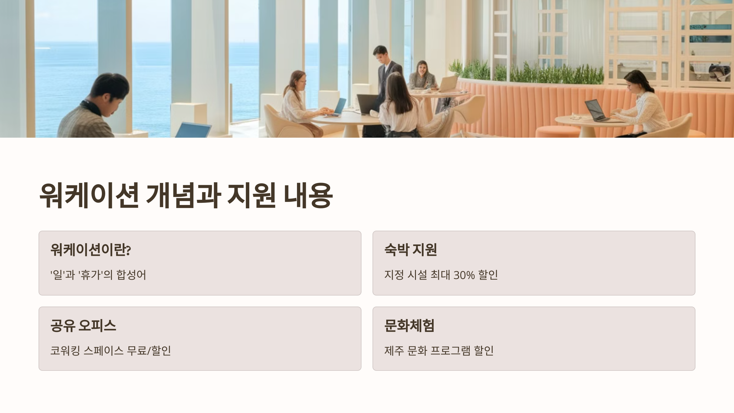 - 숙박 지원: 지정된 워케이션 시설 이용 시 최대 30% 할인