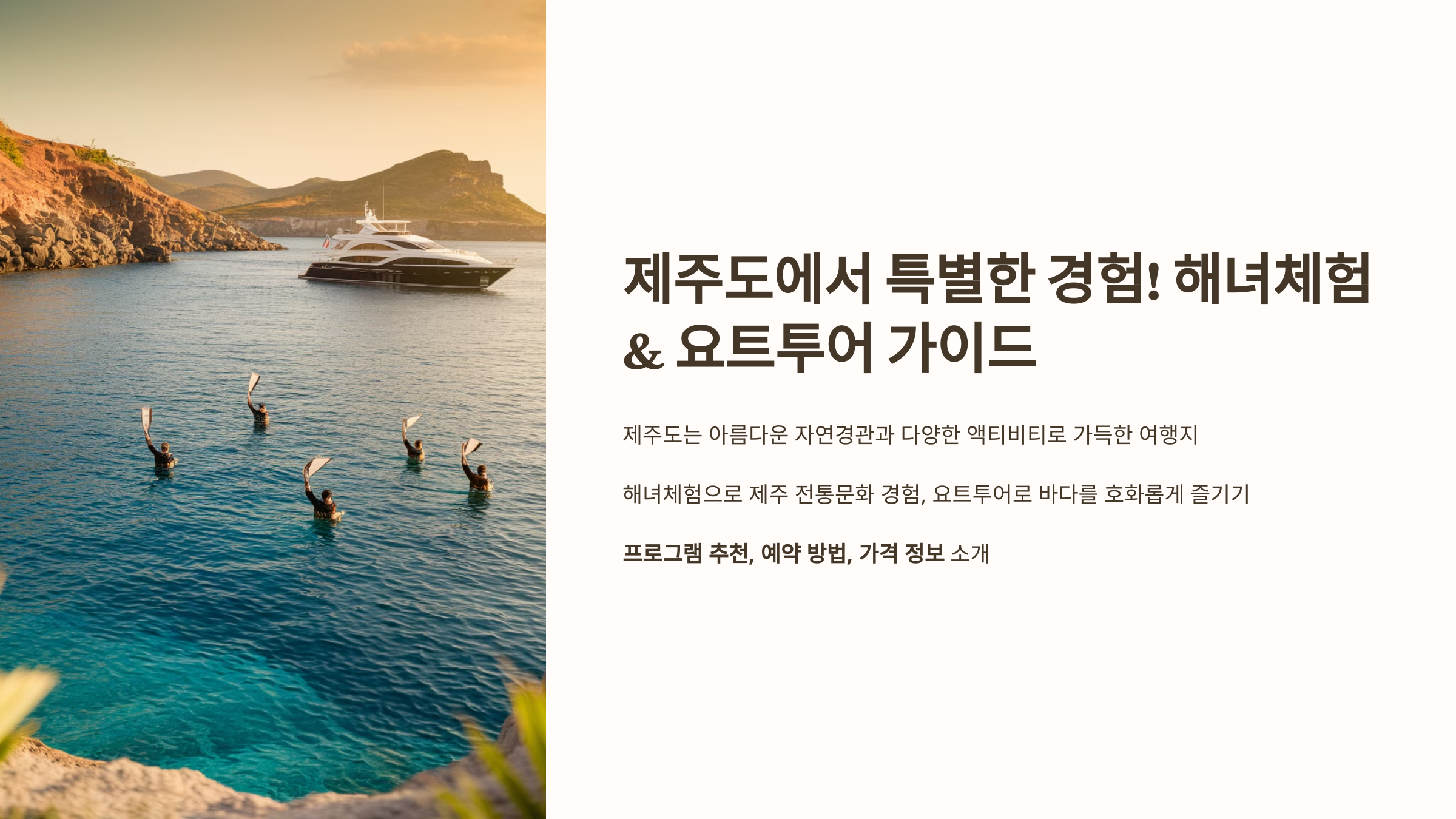 - 제주 전통 문화(해녀체험)와 현대적인 액티비티(요트투어)를 모두 경험 가능