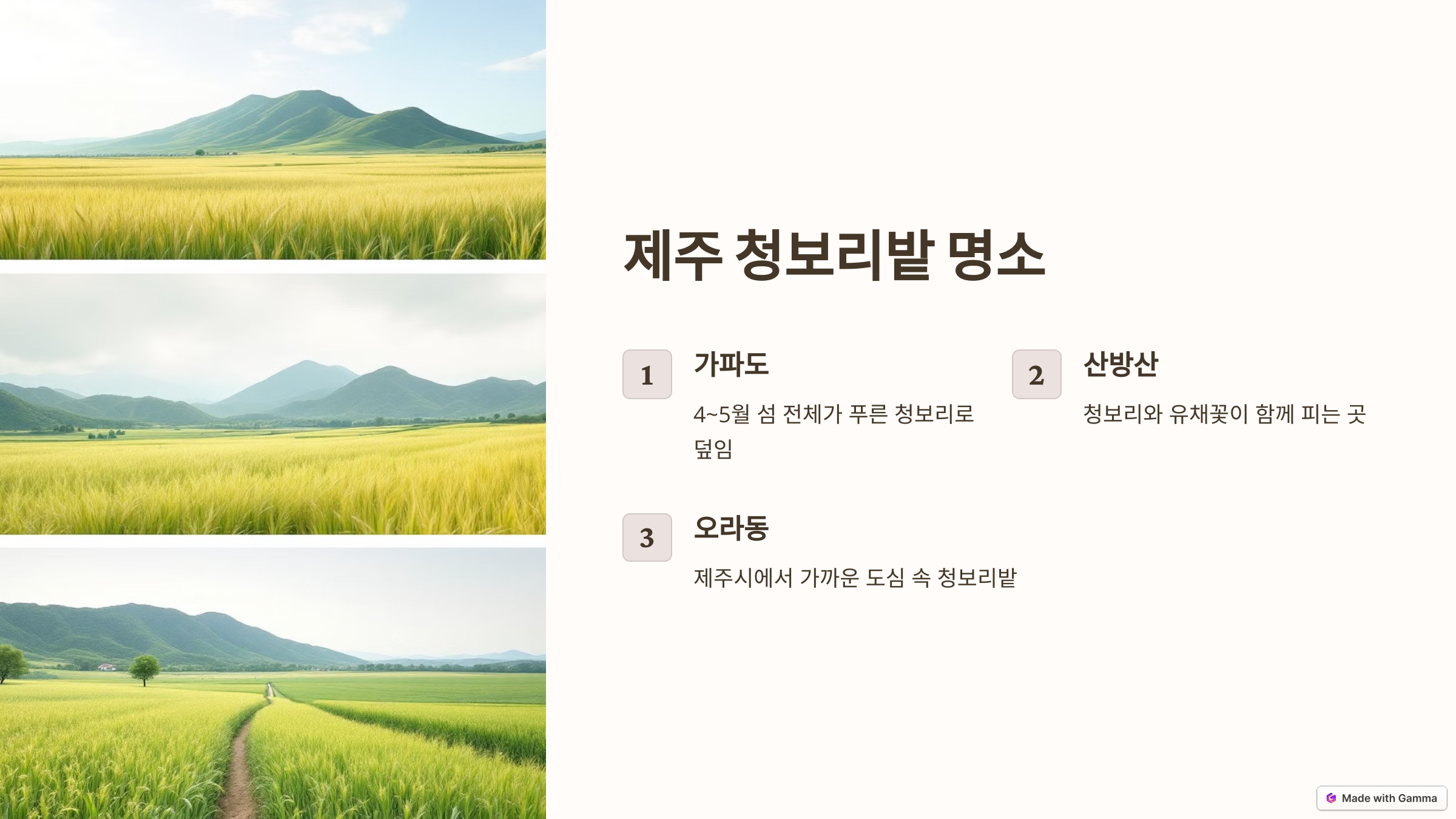 제주 청보리 여행, 지금 떠나보세요!